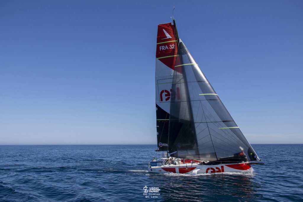 Loison et compagnie perdent l’avantage à l’entrée de la Manche mais c’est la Baie de Morlaix qui leur inflige la double peine. Au soleil couchant, alors qu’ils approchent de la ligne, le vent s’effondre derrière le trio vainqueur. La mer est une flaque, les voiles pendouillent et le compteur égrène les minutes, puis les heures. C’est même une nuit complète qui va s’écouler avant qu’Alexis, Guillaume et Charlotte ne franchissent la ligne, le temps de voir s’envoler leurs espoirs de victoire.