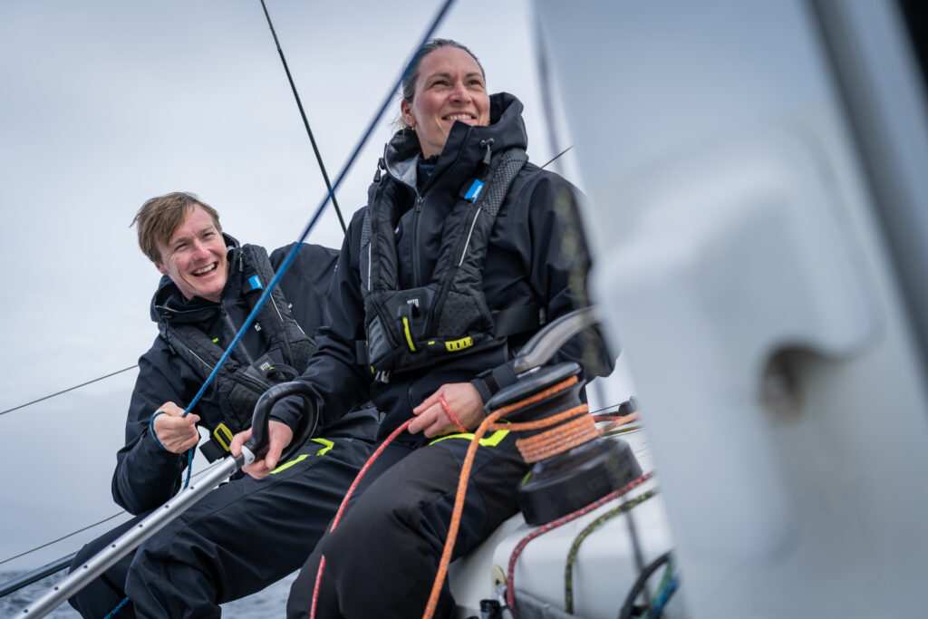 Lola Billy et Corentin Horeau (Région Bretagne – CMB Océane) réalisent une remontée remarquable après avoir été contraints de faire escale à Lisbonne. Leur résilience et leur capacité à exploiter les opportunités météorologiques leur ont permis de revenir dans le match. « Après leur escale au Portugal, ils repartent derniers avec 150 milles de retard sur les leaders. Malgré ça, ils ont gagné les places une par une pour finir au contact, à moins de deux heures des vainqueurs. Ils ont su tirer profit des situations météo mais ils se sont surtout battus jusqu’au bout », observe Jeanne Grégoire.